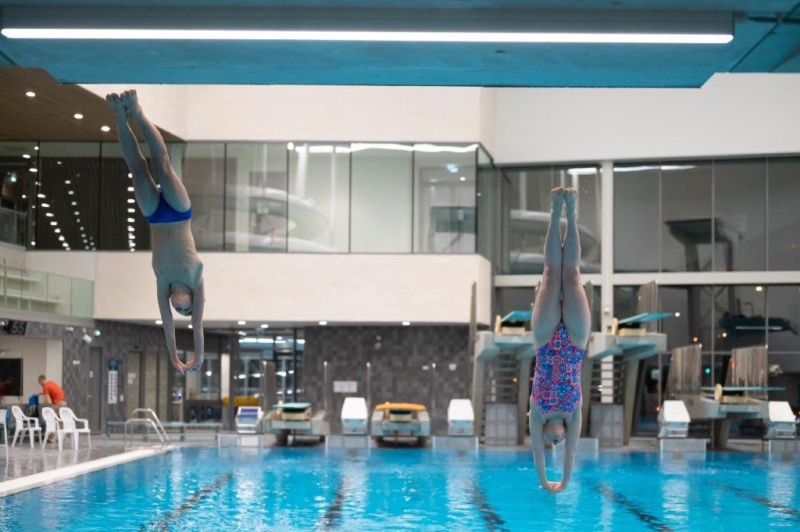 Plezier staat voorop iin het schoonspringen en tegelijkertijd leer je ook hoe je mooie sprongen kunt maken van de duikplank en soms ook van de toren.